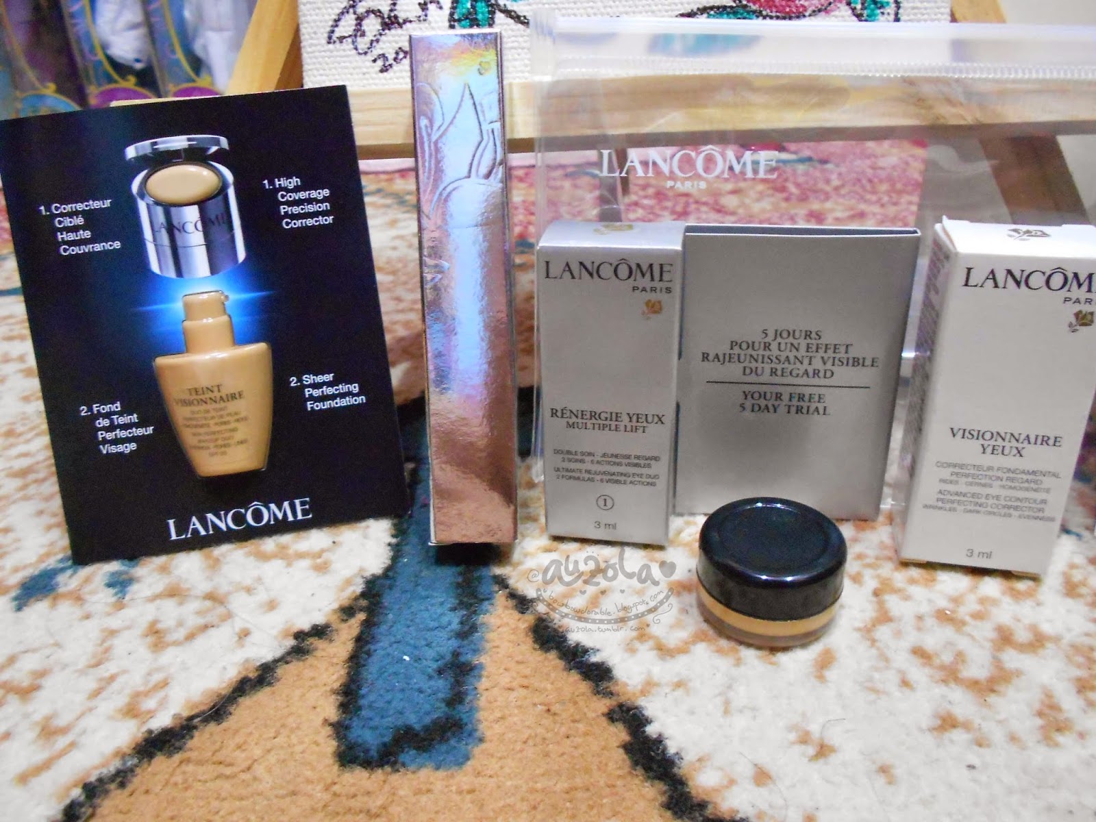 Here's the product form goodie bag that i got. Not much and most of them are samples, but it's nice to try the products! And the pouch is so cheap looking, but oh well. Anyway what i got are, left to right: Teint Visionnaire sample 01 - Full size Gloss in Love - Renergie Yeux Multiple Lift Sample - Teint Visionnaire sample in jar 03 - Visionnaire Yeux Sample